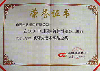 榮獲2010中國國際鑄件博覽會藝術鑄品金獎