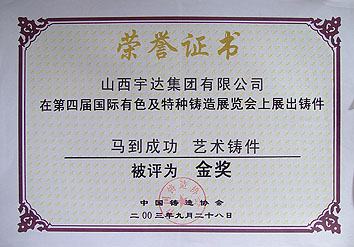 榮獲第四屆國際有色及特種鑄造展覽會金獎