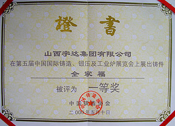 榮獲第五屆中國國際鑄造、鍛壓及工業爐展覽會一等獎