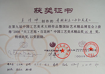 榮獲中國(guó)工藝美術(shù)優(yōu)秀獎(jiǎng)