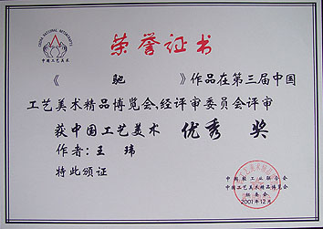 榮獲第三屆中國工藝美術精品博覽會優秀獎