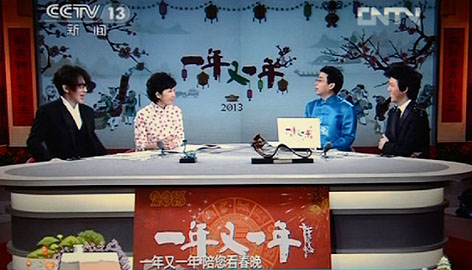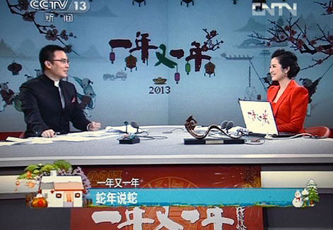 ??? 2013年2月9日除夕,國家文化產業示范基地山西宇達集團創意設計制作的高端青銅"蛇"系列藝術禮品再次被中央電視臺春晚節目組選中,其中《金蛇狂舞》和《常如意》兩款還被請上中央電視臺除夕特別節目"一年又一年"的直播臺,讓億萬觀眾再次感受作為中國文化特有符號之一的生肖蛇的獨特魅力。這是繼2011年農歷兔年以來,宇達高端青銅藝術生肖禮品第三次亮相央視春晚。