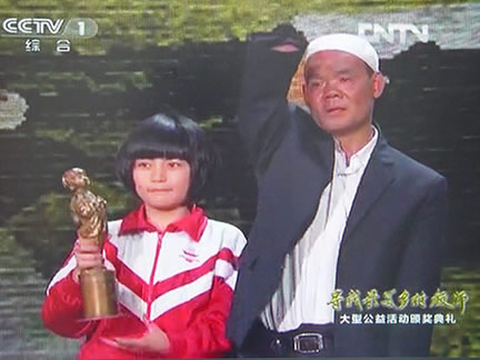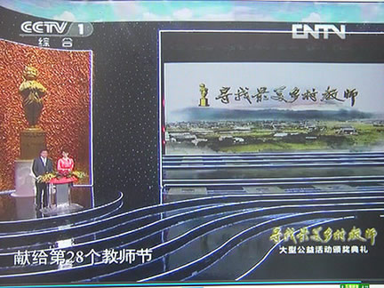 ??? 2012年9月10日晚,由中央電視臺、光明日報聯合舉辦的2012"尋找最美鄉村教師"大型公益活動頒獎典禮在中央電視臺隆重舉行。 由著名雕塑家潘松設計、宇達制作的"最美鄉村教師獎杯" 隨著每一句感情至深的"老師好",頒發給全國優秀最美鄉村教師,他們多年對艱苦與貧寒的堅持全部化作他們心中那份堅守與光榮,熠熠生輝的獎杯映著淳樸無私的笑臉,在燈光下無比偉大,無比神圣。
