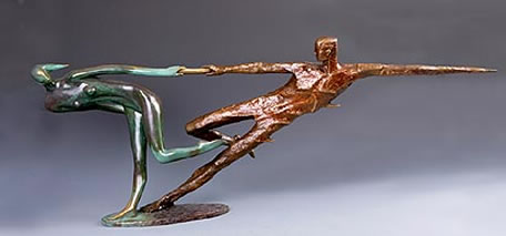 這次大賽是在北京舉行的第29屆奧運會立項的一項重要公益文化活動。去年8月8日正式啟動,截至今年3月1日,共收到82個國家和地區的應征作品2433件(組)。宇達入圍的作品分別是由宇達集團雕塑設計中心張建波創作的《接力》(圖1)和鄭新明創作的《黃河風》(圖2)。據悉:這兩件入圍作品將參加今年6月啟動的全國巡展。